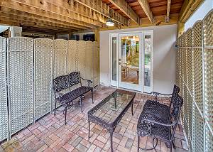 Through the second bedroom guests will see the double glass doors that lead to the private patio. Seating for four on under the covered patio gives guests the view of the lush courtyard and sounds of the soothing fountain just beyond. The courtyard is shared with guests in the other 2 parts of the property, but the patio is only for you.