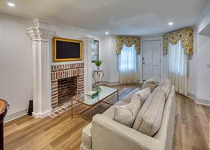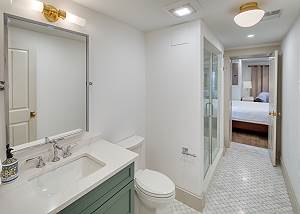Historically, ground floors of multi-story mansions was where kitchens were often located. Using large brick fireplaces for cooking and having doors at either end of the space to allow breezes to sweep through. When the owners purchased this home, the garden level was completely unfinished with the original dirt floors and exposed brick walls. The renovation covered the brick walls with plaster and finished out the details with the most charming, modern finishes.