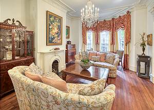 The mansion is divided into three distinct residences with this listing specifically for the full Rowhouse, not including the Carriage House in back.