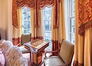 Facing Gaston Street, you’ll notice the 2nd story, bright red lacquered door, shining like a proud peacock, leading to the parlor entrance of The Main House.