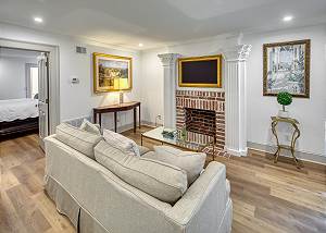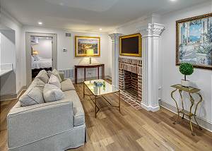 Historically, ground floors of multi-story mansions was where kitchens were often located. Using large brick fireplaces for cooking and having doors at either end of the space to allow breezes to sweep through. When the owners purchased this home, the garden level was completely unfinished with the original dirt floors and exposed brick walls. The renovation covered the brick walls with plaster and finished out the details with the most charming, modern finishes.