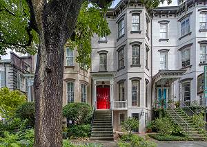 This set of five Italianate rowhouses from 108 to 116 East Gaston were constructed in 1884 by JJ Dale & David Wells, notable political figures of their era. The Impeccable Peacock sits as the second in the row and is also the third home from Drayton and Gaston Streets and the corner of Forsyth Park!