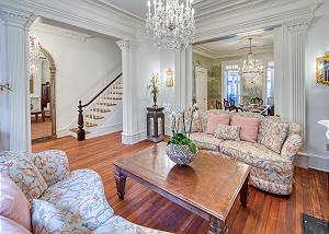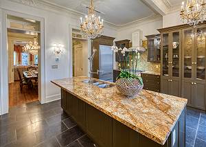 The home is filled with natural daylight and spectacular decorative features in the millwork, vintage chandeliers and even the bathroom faucets! Every room has another sumptuous design feature to unveil; many collected by the owners while traveling the world. The furnishings are eclectic and most interesting!