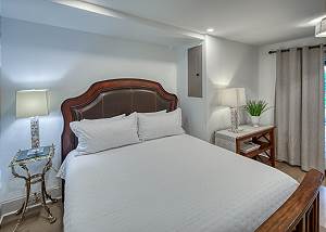 Through the second bedroom guests will see the double glass doors that lead to the private patio. Seating for four on under the covered patio gives guests the view of the lush courtyard and sounds of the soothing fountain just beyond.