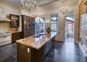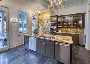 The home is filled with natural daylight and spectacular decorative features in the millwork, vintage chandeliers and even the bathroom faucets! Every room has another sumptuous design feature to unveil; many collected by the owners while traveling the world. The furnishings are eclectic and most interesting!