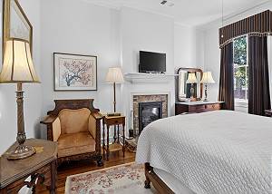 This beautiful 2-story brick home accommodates up to 4 guests in a quintessentially, old Savannah ambiance. From the period furnishings to the meticulously preserved historic details of the original 1853 home. The home features original exposed brick walls, sliding wood pocket doors, coal burning fireplaces.
