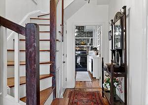 Guests enter the ground floor foyer and step into the cozy living room with the original fireplaces (does NOT function) and a plethora of books and local art. The owners are film & TV set designers for programs filmed in New York City and have taken great care in furnishing this home to offer a period feel. They have also been the hands-on preservationists in restoring this jewel!