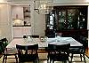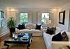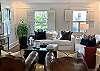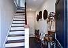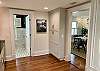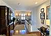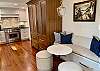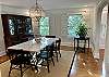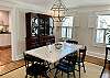 The elegant dining room seats six comfortably and is connected to a spacious and comfortable living room with books, games and a Roku TV. There is also a powder bath next to the kitchen, designed with intricate Carrara marble tile.