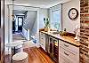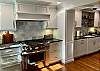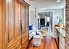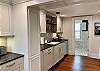The chef’s kitchen offers a full array of Thermador appliances which include a professional 36” gas stove with griddle & oven, 30” refrigerator/freezer, Scotsman gourmet clear ice machine, wine fridge, beverage fridge, microwave drawer, a countertop Breville toaster oven & toaster, and a Cuisinart pod-coffee maker. The sink has a reverse-osmosis room temperature and boiling water filtration system. The kitchen is completely equipped for all your dining needs.