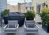 Off the kitchen is a large outdoor terrace, equipped with a 32” professional Turbo gas grill and a gas fire pit. There is plenty of comfy seating to relax and enjoy the continual Southern breeze, neighborhood sounds of church bells, horses clomping, ships’ horns and views of fireworks from the bay during the holiday seasons!